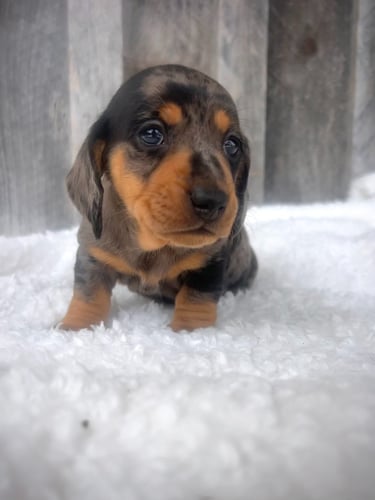A tiny tan hunk called Stumpy matched with a silver dapple beauty Penelope created little elegant bundles of joy! Classic and timeless black & tans as well as some light silver dapples...these little beauties are easy to fall in love with.